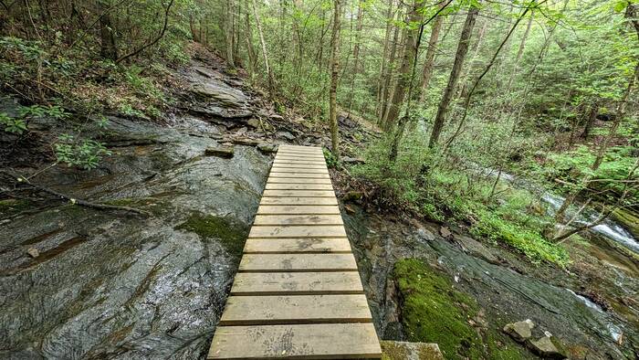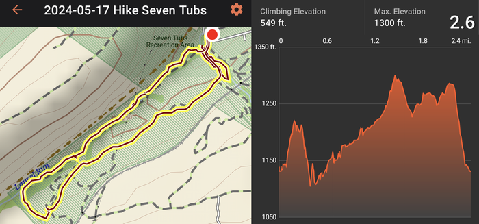 During a break in the rain on Friday, we took a trip into the nearby town of Wilkes-Barre to have the truck tires rotated. Julie discovered an interesting-looking nature area nearby (Seven Tubs Recreation Area), so we had ourselves a nicer-than-expected hike.