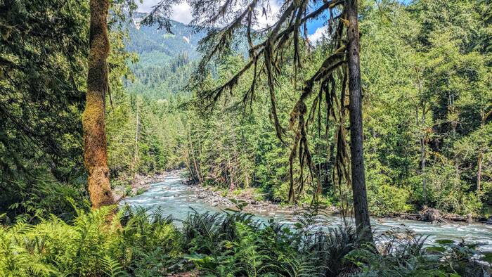 Our campground was right on the banks of the north fork of the Nooksack River. Although we didn't have a view of the river from our campsite, we could hear it. The next day, we hiked the trail along the river that began right off the campground (5.5 miles).