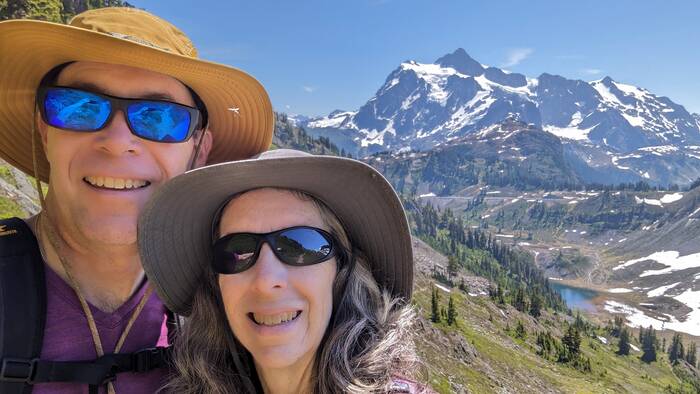 On Friday, we drove about 40 minutes away to hike the spectacular Chain Lake Loop Trail (7.5 miles). It was pretty much non-stop scenery the whole time. Rick has declared it his new favorite hike since retirement. Julie agrees. Fair warning--lots of pictures to wade through here. 😁