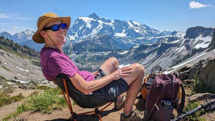 At Herman Saddle, there were lots of people milling about, playing in the snow, doing yoga, and just taking in the expansive views of both Mt. Baker and Mt. Shuksan