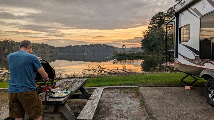 Our home for the week was in the Tombigbee National Forest on beautiful Davis Lake, about 25 miles south of Tupelo, Mississippi and about 4 miles off of the Natchez Trace Parkway. There was not much to do in the area besides take in the view.
