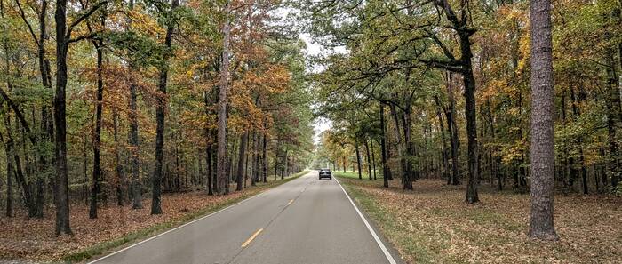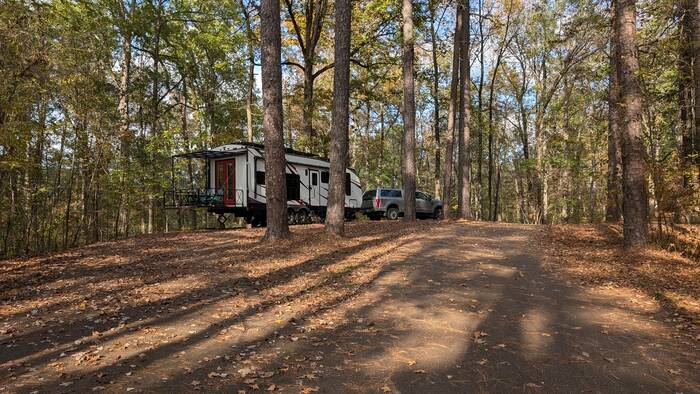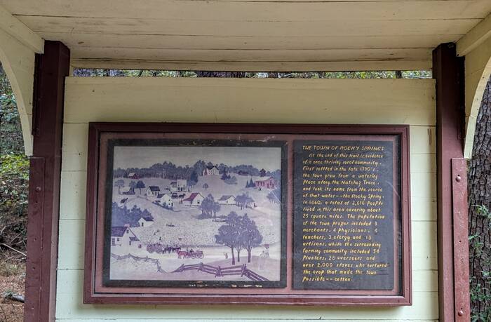 On Thursday morning we were back on the Natchez Trace again, headed toward Rocky Springs Park, another free first-come-first-serve campground. We got an early start to our three-hour journey in the hopes of finding a spot with a better exposure for solar, as we had drawn down our batteries considerably in the shady spot at Jeff Busby. (It turns out that cloudy days under shady trees in November just don't provide enough solar to keep up with our electrical usage-- go figure 🙂. )