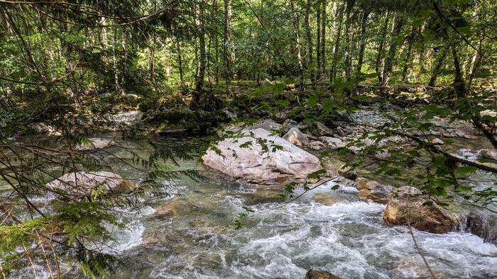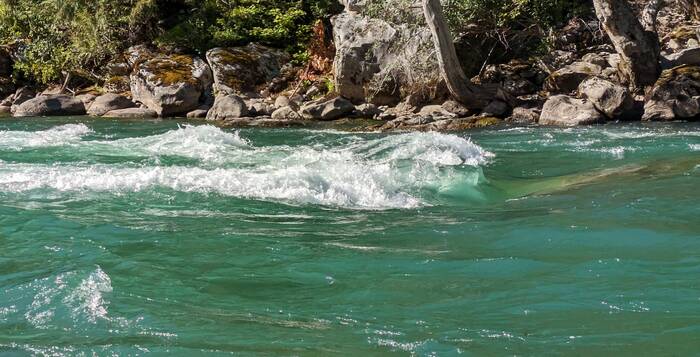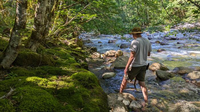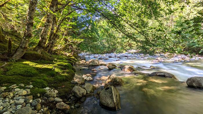 At the confluence of Newhalem Creek with the Skagit River