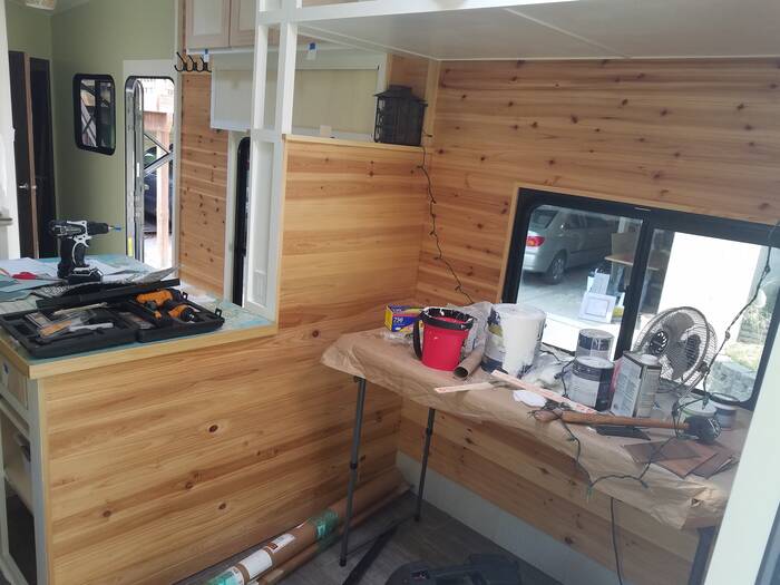 We also found out that we really liked the cedar planking once it was finished with Danish oil - so a bunch more locations got covered . . .