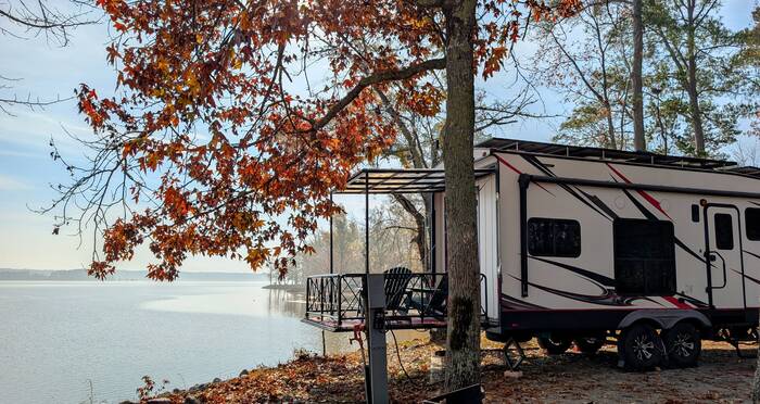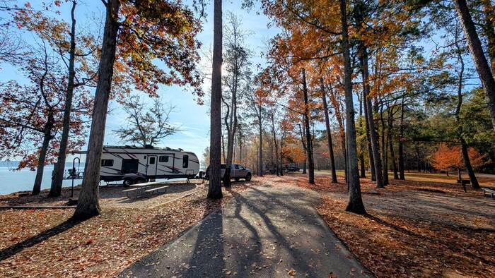 We had a gorgeous site overlooking Okatibbee Lake, and we took the opportunity to mostly just absorb it all while the last remnants of autumn lingered around us. We took a walk. We rode our bikes. We sat on the deck watching the birds and the fish jumping out of the water. Not exactly the stuff that makes for gripping content.