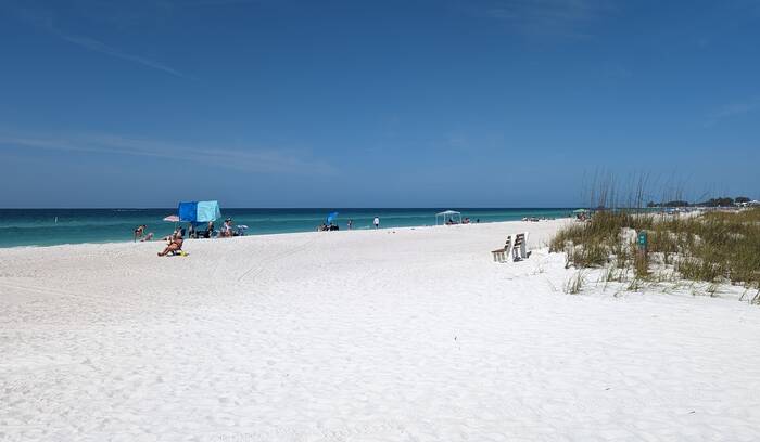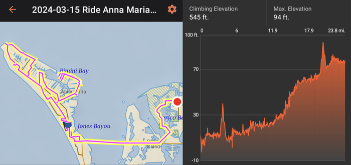 The other interesting thing is we took our now annual trip down to Anna Maria Island. We chose a beautiful warm day, but what we didn't realize was that it was Spring Break for Florida schools. So, it was a bit busy. Traffic to the island was horrendous, so we ended up parking at a nearby nature preserve and rode our bikes to the island. The ride through the nature preserve was quite nice, so it was a win for us.