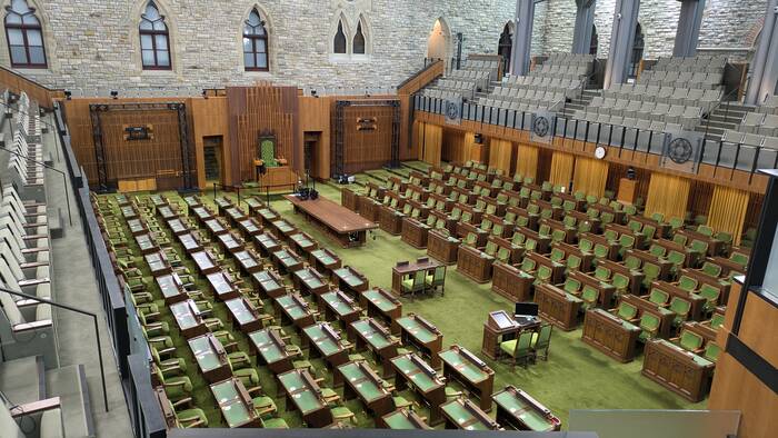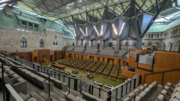 The temporary home of the House of Commons built into a courtyard of West Block