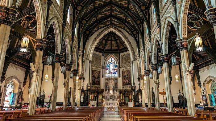 Notre Dame Cathedral-Basilica The striking silver spires are covered in tin