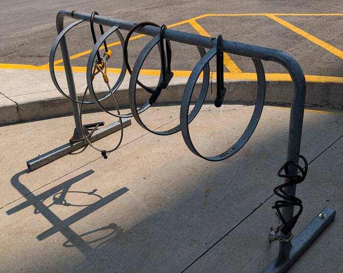 Many of the bike racks we passed had all sorts of locks attached to them. Is this all that is left of your bike after it gets stolen??