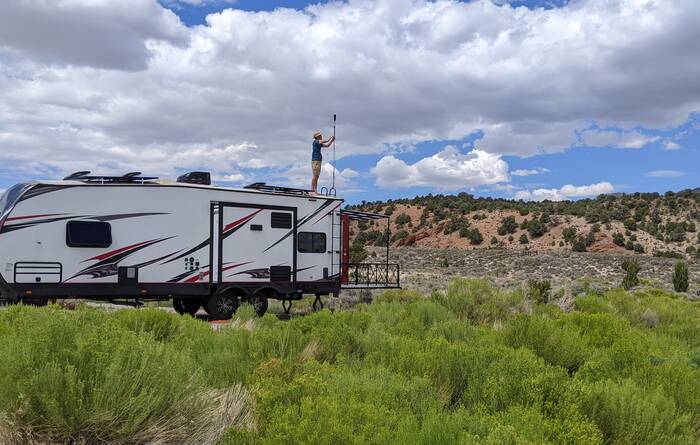 The road started going straight downhill, so we turned around. The wind farm in the distance is the same one we passed on the way to the campground.