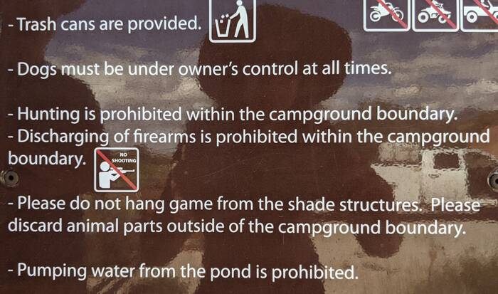 The free campground had very nice designated sites with covered picnic tables and a pond in the middle. The pond was an unusual feature out here.