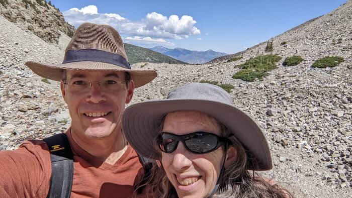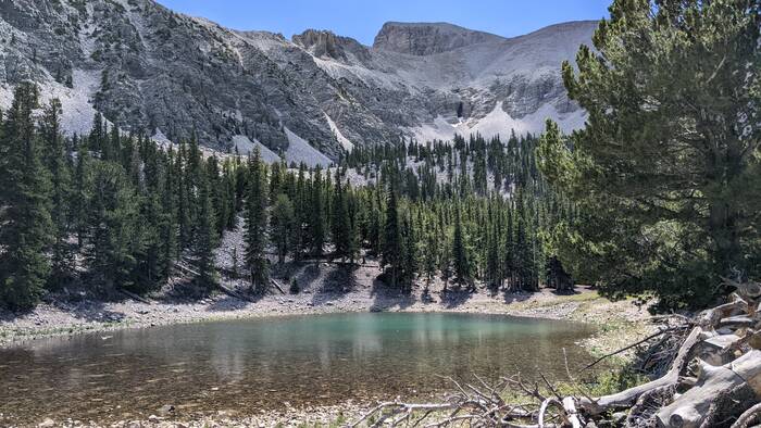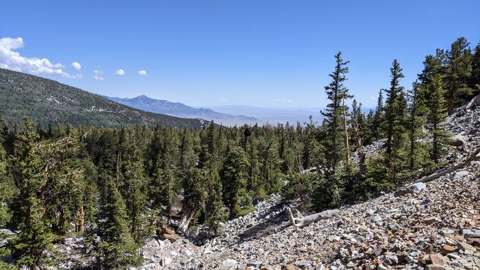 Wednesday was looking to be the nicest weather day, so we took off for Great Basin National Park, one of the least visited national parks in the United States. It is famous for a few things: Lehman Caves (we've seen caves before, so we skipped the tour this time around), bristlecone pine trees (the oldest living things in the world), and Nevada's only glacier (although we saw a sign pointing out a glacier when we were in the Ruby Mountains, so not sure this absolutely true). The drive into the park was a twisty road leading from the dry, dusty valley up to the forested mountain top, complete with many switchbacks and grand views.