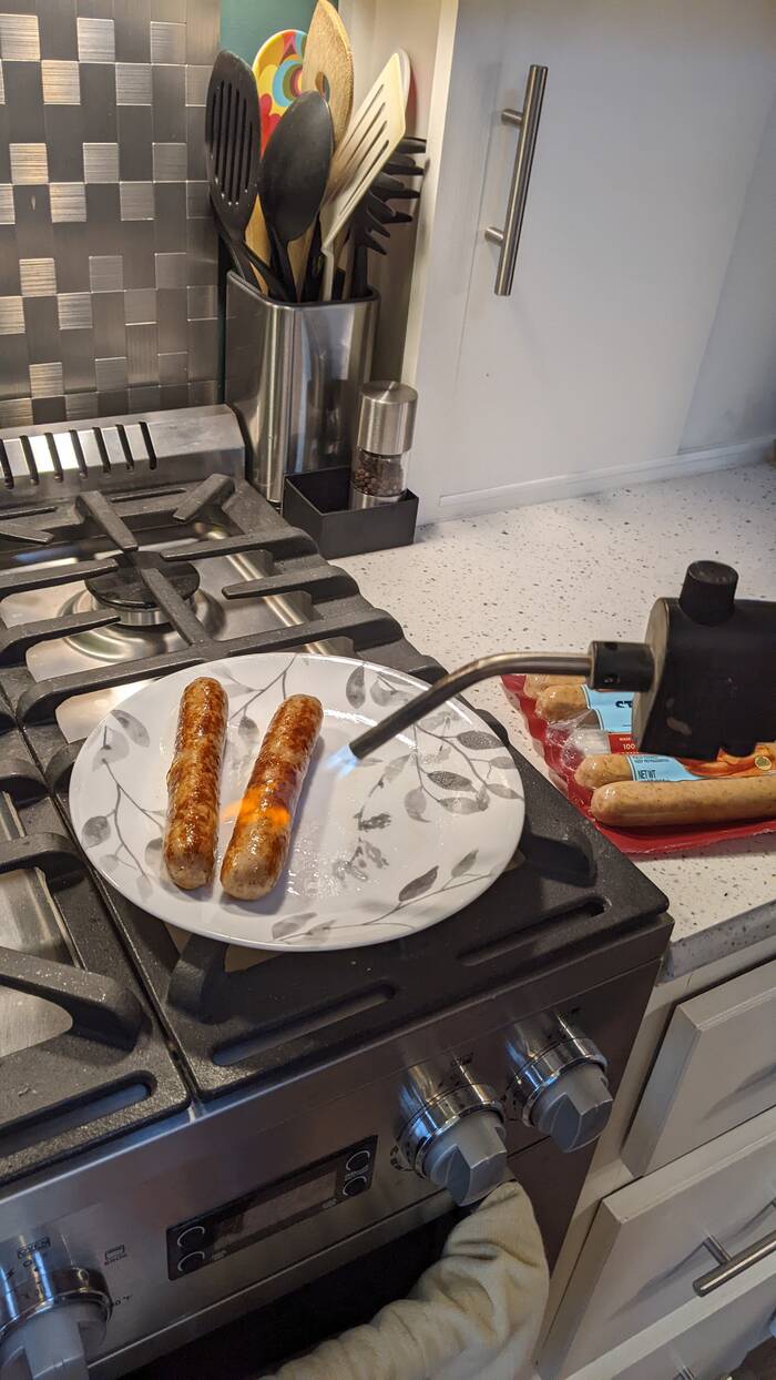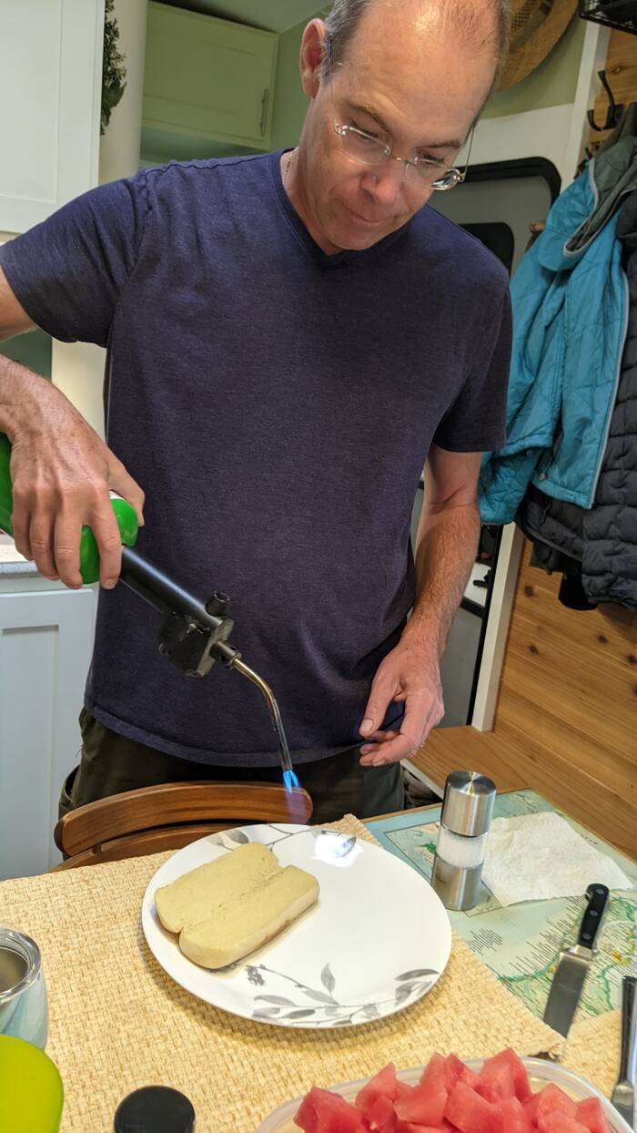 One of the evenings we had planned to have brats on the grill, corn on the cob, and watermelon, but the sky decided to storm on us. So, we improvised a little.