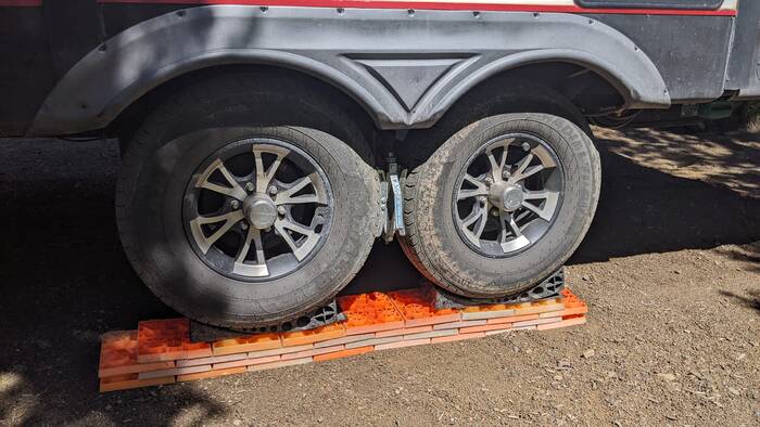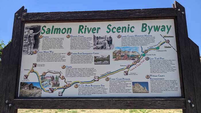 After a short drive from Salmon through Challis we arrived at out next site where we had a choice of several first come first serve campgrounds (ranging from $5 through $10) as well as boondocking options (free). We settled on a decent private spot in one of the $10 campgrounds where the pavement turned into gravel. It was kind of tight getting into our spot, and we needed to use all of our leveling blocks, but we finally got settled.
