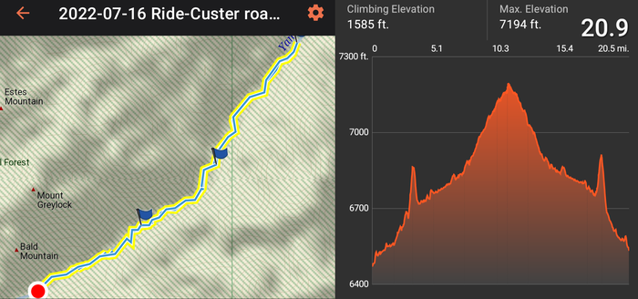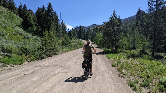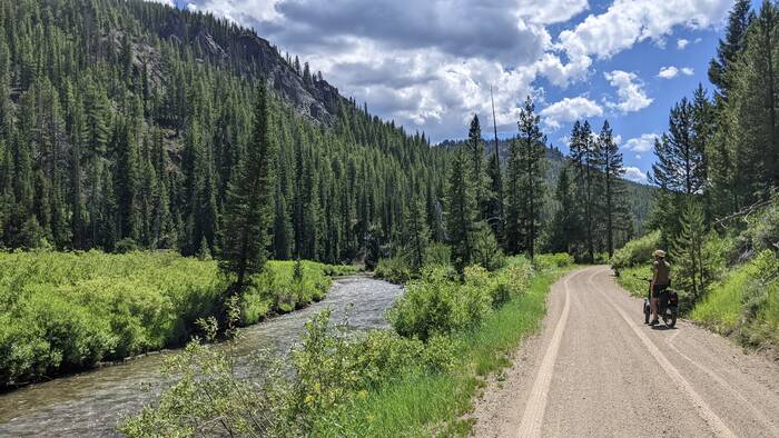 Our second ride was 21 miles (out and back) along the Custer Motorway. In the 1800s, this road was a toll road used for stagecoach passengers and for getting heavy equipment to the mining towns of Custer and Bonanza. This was a really nice gravel road that followed the Yankee Fork through the mountains. This rated as one of our best rides yet.