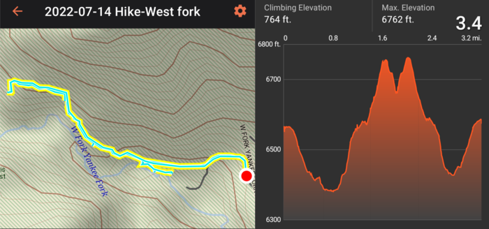 Our main hike was a 3.5 mile out and back walk which sort of followed the West Fork of the Yankee Fork of the Salmon River (got that?). It was pretty hot that day, so it felt longer than 3.5 miles!