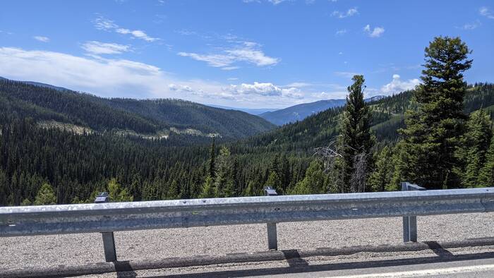 Despite not taking the exciting sketchy gravel pass, the drive was still scenic, and it took us through some plenty dramatic mountain scenery (especially as we entered Idaho) as it dropped us into the Salmon River Valley.