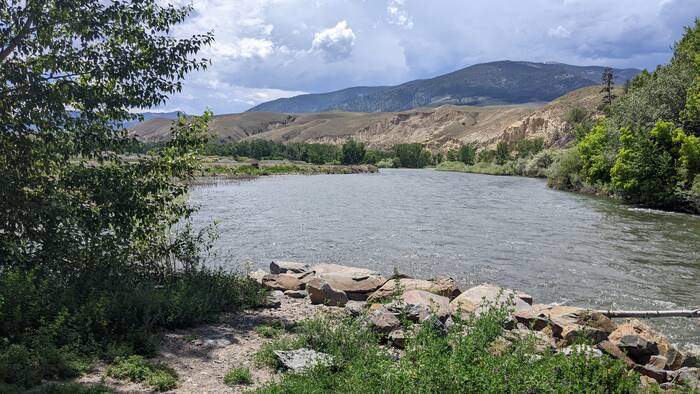 For a basic gravel parking lot, it turned out to be a pretty decent spot with a nice view of the mountains, neighboring cows, and the confluence of the Lemhi and Salmon rivers. And, did we mention it was free?