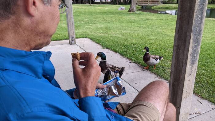 We were accosted by some very assertive ducks the moment we sat down for a snack.