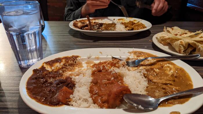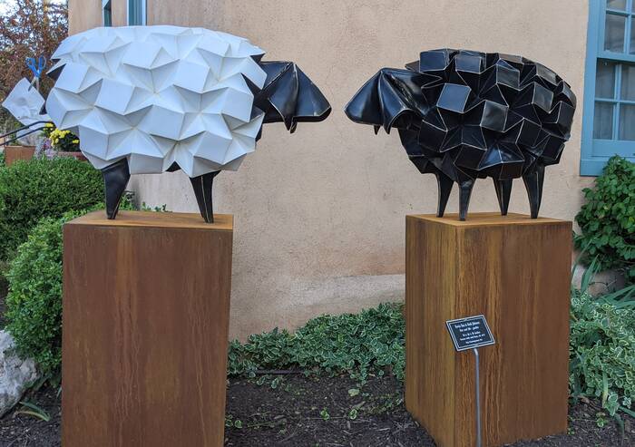 That evening we had a delightful dinner at Jambo Cafe which specializes in African-Caribbean fusion cuisine. (Santa Fe is quite the foodie town, and we wanted to venture into something other than the standard New Mexican fare that we had enjoyed in other places already.) We both ended up ordering their sampler plate which included a choice of three entrees, so were able to taste six different items. Everything was delicious, but Rick liked the goat stew best, while Julie's favorite was the lamb stew. (Seems like there should be some kind of joke in there somewhere.)