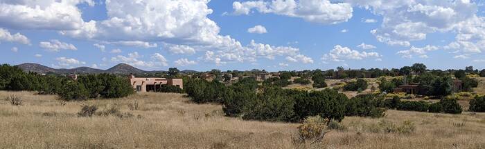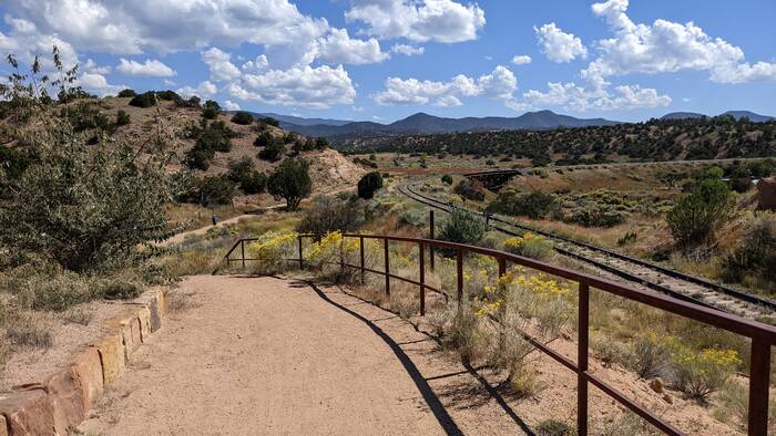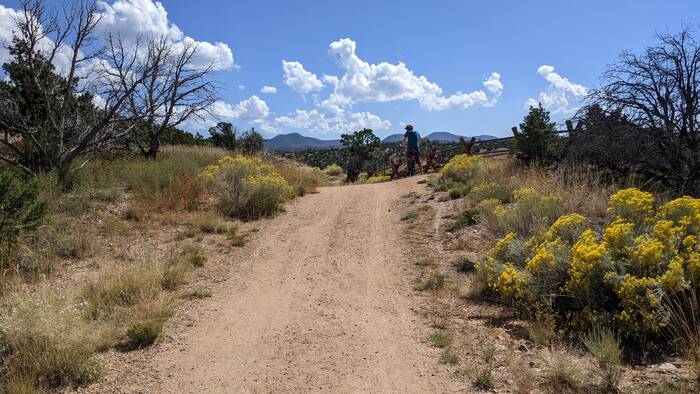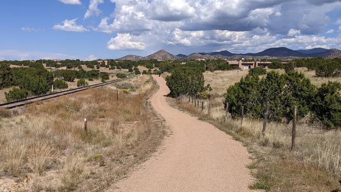 The next morning we headed back into Santa Fe for a farmers market where we got some fresh tomatoes and a bunch of basil so we could make bruschetta that evening. Afterwards, we headed a bit south to ride a bike path into a more suburban/rural setting. It was a nice 20 mile ride along a gravel path where we could take in the countryside and view homes which were almost all in the classic adobe style architecture.