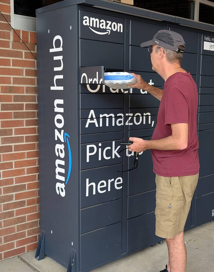 Afterwards, we made a short trip to the nearby Amazon box to pick up our new faucet...
