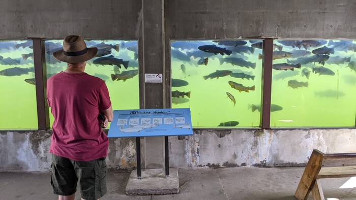 Thursday started with shopping, and then a nice saunter around the campground and the fish hatchery right next door to the campground. It is mostly a demonstration site and tourist attraction at this point, so it had a lot of historic exhibits as well as a restoration of a train car used to transport live fish to streams and lakes back in the 1800's and into the 20th century.