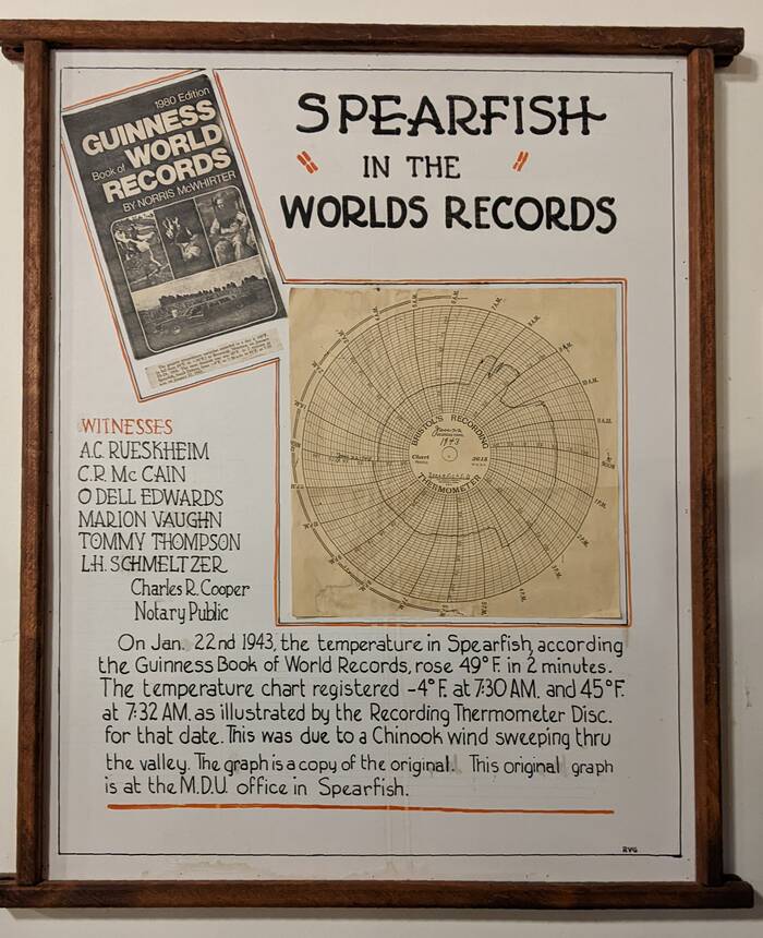 Interesting bit of trivia: Spearfish holds the world record for largest temperature drop in the shortest amount of time--49 degrees in 2 minutes!
