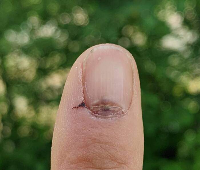 For anyone following along and wanting a smashed finger update (I am sure Julie is not interested) . . . It is healing up well and also seems to be staying attached at this point.