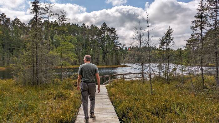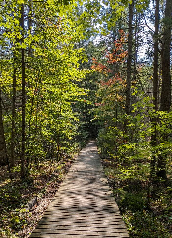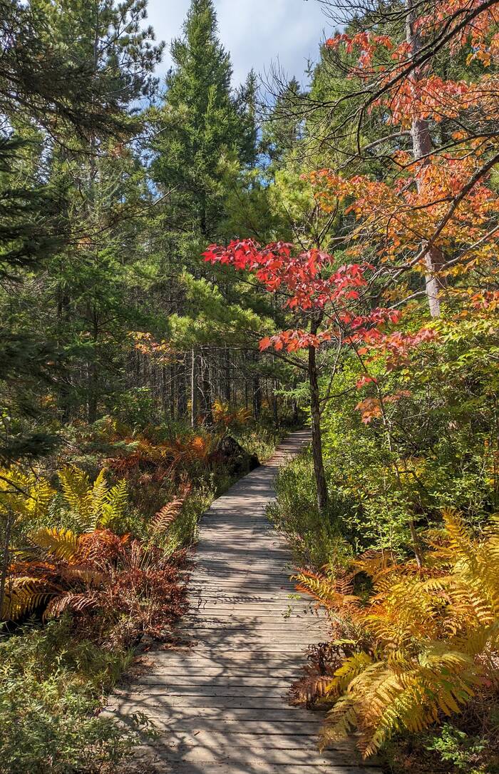 We had camped in this area of Wisconsin for quite a few summers when the kids were growing up, and it was nice to visit again after so many years. One of the first places Julie wanted to revisit was the Fallison Lake Nature Trail (an easy 2.5 mile hike). We had gone there a few times in previous summer months, so it was nice to experience it with the little splashes of early fall color.