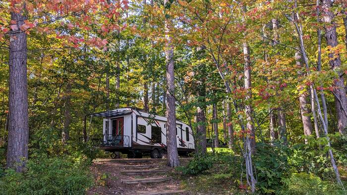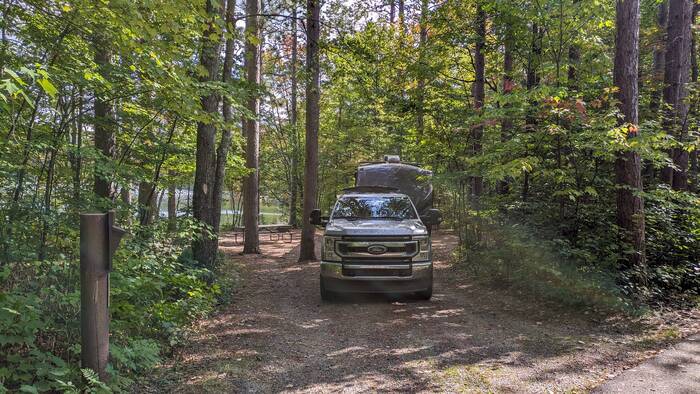 The other thing that made Julie slightly nervous about the campsite was the lack of solar potential because of all the trees. To top it off, generators are not allowed in this campground. That itself was one of the attractions to this campground (and it was blissfully quiet and peaceful due to the lack of generators). However, the pressure was on to see if we could make it through seven days on our batteries and what little sunshine the solar panels could absorb.