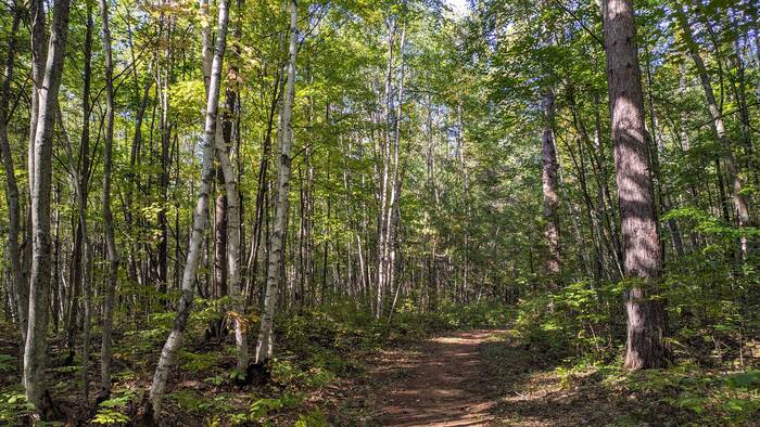 Because the Northern Highland-American Legion State Forest has so many lakes, Julie wanted to see as many of them as possible (at least within, say, a 5 or 6-mile radius). The normal way to see lakes is probably via canoe or kayak, but since we don't have either of those, we took to the roads and trails.