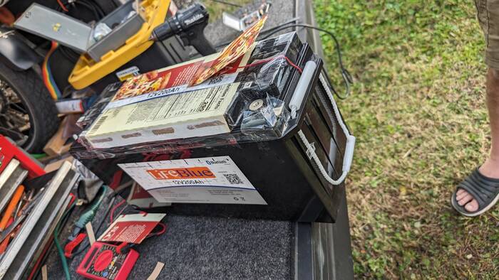 Another electrical issue was one of our batteries which was misbehaving. We have four 200Ah lithium batteries of which three have always worked properly. The fourth one was not balancing properly from the get-go, so one of the internal cells had a higher voltage than the other cells which caused the battery to never get fully charged. I tried taking the battery apart but it was completely glued together. So, I ended up just carving holes in the case with a rotary tool until I could get to the posts of the high cell and put a 3ohm 5W resistor across it until its voltage dropped down to the voltage of the other cells. Turns out, I had to take out around 40Ah from that cell to get it balanced. After putting the battery back in place, it seemed to work pretty well, but then it became apparent that another cell in that battery was also not balanced. This time, I went to Amazon and got a small active balancing board (inductive) and carved more holes in the battery to connect the board to all of the internal cells. I couldn't really get inside the battery to properly connect the wires, so I ended up using some solid core wire and just wrapping it around the metal posts and then putting a tie wrap over the wire to hold it in place . . . not great but should work. There wasn't really space to put the new board inside the battery - so there are just wires hanging out of the battery and the board is taped to the top of the battery. Kindy of janky. After putting the battery back in the second time, the active balancing board did its thing and brought all the cells into balance and should continue to do so. I don't think this battery is really providing the 200Ah it is supposed to anymore, but I am guessing it probably still provides at least 180Ah which will do fine for us, and with the addition of the active balancing, it should still provide value for quite a while.