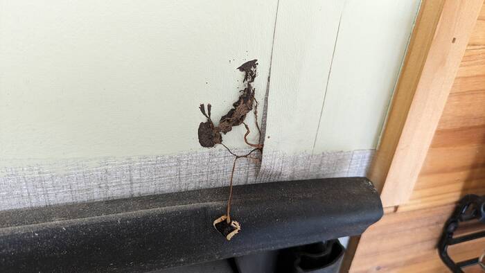 Fixed roof ladder part that is on top of the roof. The caulk seemed squishy so I poked it and some water came out. Turns out that the way they attached the rungs to the roof portion allowed the pipe to fill up with water - so all this had to be fixed and re-caulked.