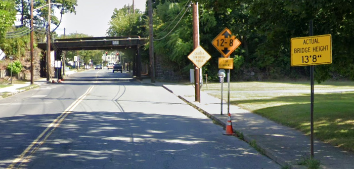 Which sign do we believe-- "13' 8" Actual Bridge Height" OR "12' 8" Low Clearance" ???
