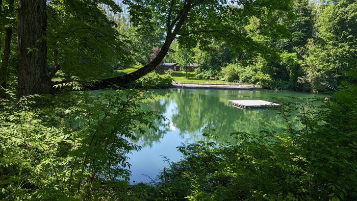 After the iron works closed its doors in the early 1900s, the original ore pit was abandoned. It eventually filled with spring water and subsequently became a popular swimming spot. It is still used for that purpose in the state park today.