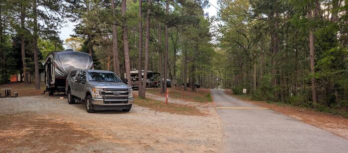 Our first stop was Lake Juliette near Macon. The campground was solidly in the "ok" category, but it was fine for our three-night stay. One thing that was particularly annoying was that the driveway of our site was angled opposite the traffic flow. That made backing in a little more exciting than usual. We don't usually enjoy an exciting backing-in experience, but this one wasn't the worst we have had.