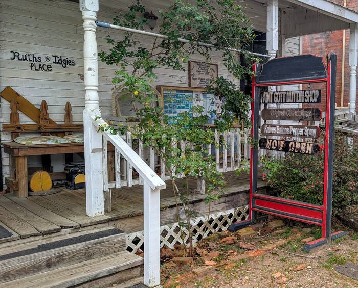 The next day, we checked out the small town of Juliette where the movie "Fried Green Tomatoes" was filmed. Much of the town consists of the original movie set buildings and false fronts that have since been added onto and converted into touristy businesses. The antique shops were kind of fun to browse through (probably not so much for Rick), but we got the sneaking suspicion that much of the merchandise was procured from the local Goodwill.