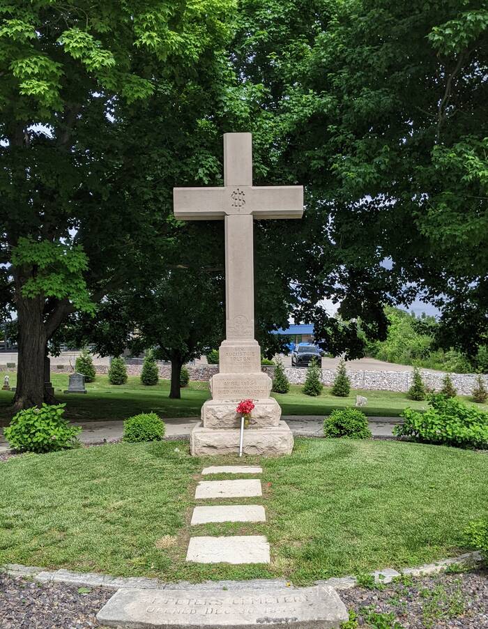 As a bonus, we were able to stop at St. Peter's Cemetery in Quincy where Fr. Augustine Tolton is buried! It feels odd how the little cemetery is penned in by modern businesses such as KFC, a movie theater, and the like.
