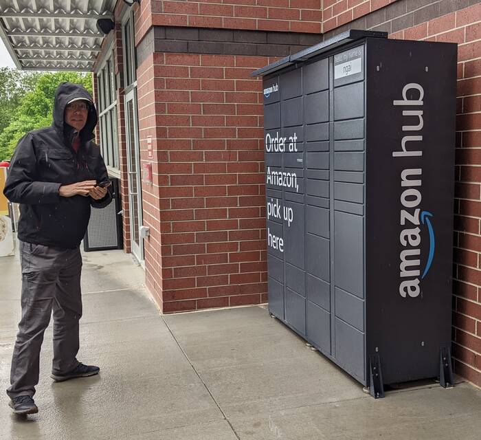 Shortly after entering Nebraska, we made a stop at an Amazon locker (conveniently attached to a gas station convenience store along our route) to get some stuff that we had ordered (new shorts and camper parts - notice a theme here?).