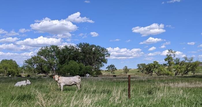 On Tuesday morning, we woke up to the gentle serenade of cows mooing and birds chirping. After breakfast, we continued westward on a variety of roads, mostly county roads that were in need of some maintenance. But the advantage of these roads is the wonderful view of the countryside and a nice peek into the "local flavor" of the area that you miss when you take the interstate.