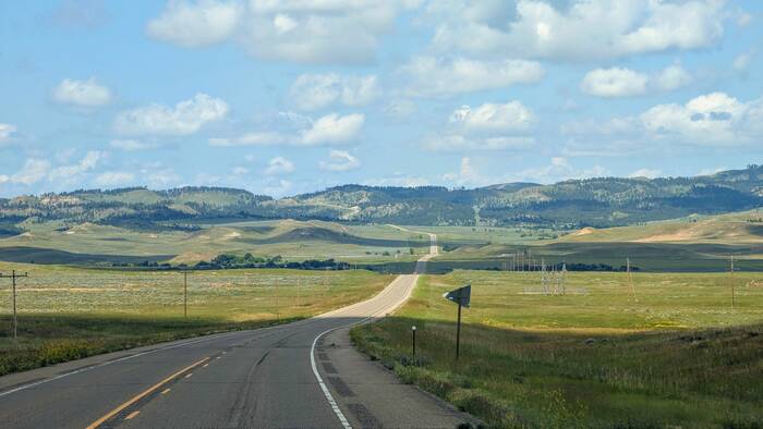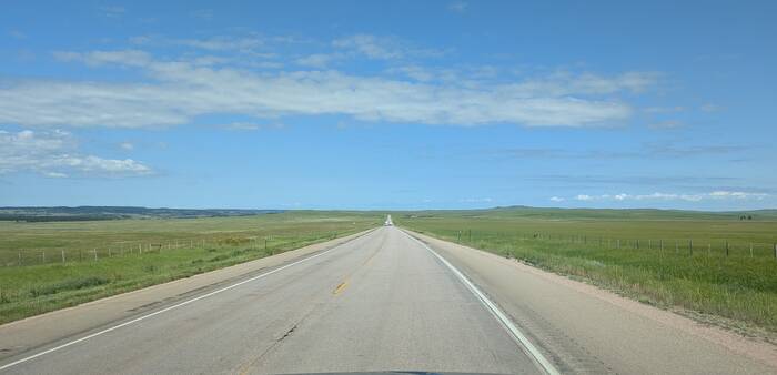 A very straight road in Wyoming