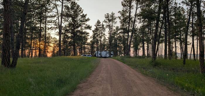 Our first night was just an overnighter in the Custer Gallatin National Forest. We never know exactly what to expect with first-come-first-serve boondocking sites. Will there be any sites left? How hard are the sites to access? Internet research helps, but there are still unknowns, and there is always a slight amount of trepidation as we approach a place like this. Well, in this case we didn't need to worry. We were the first ones to arrive at the free campground, and we were able to choose the most scenic spot (which also happened to be quite easy to get into).