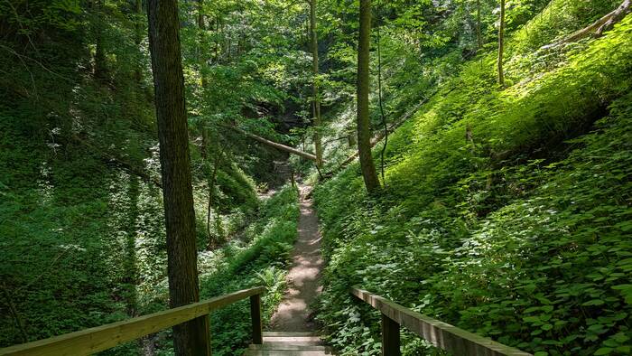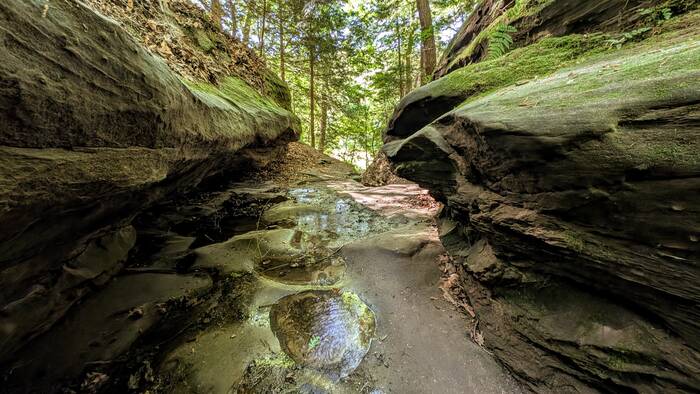 The hiking trails are the main attraction here, and by Midwest standards, they are quite nice. Many of the trails follow along seasonal stream beds. Fortunately, these stream beds weren't actively flowing (at least not too much). So, aside from a bit of mud, hiking was a lot of fun.