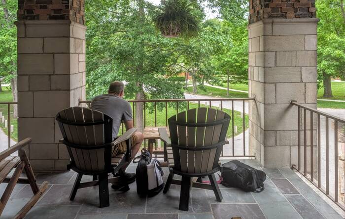 The veranda over the main entrance was where we "camped out" on Friday during the storms