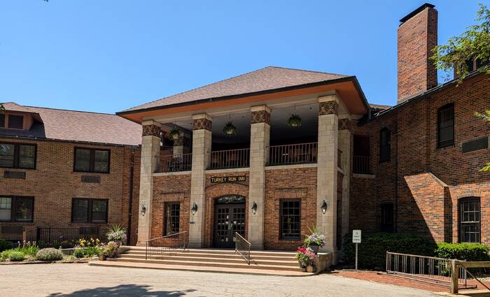 Friday afternoon brought the threat of severe thunderstorms and a tornado watch. We decided to close up the deck and hang out at the Turkey Run Inn, seeing that it was an old brick and stone structure with a basement. We packed a picnic dinner, our laptops, and some cards in case we needed to stay there for a while.
