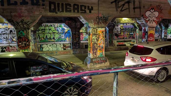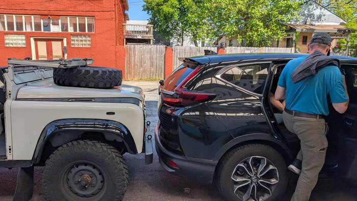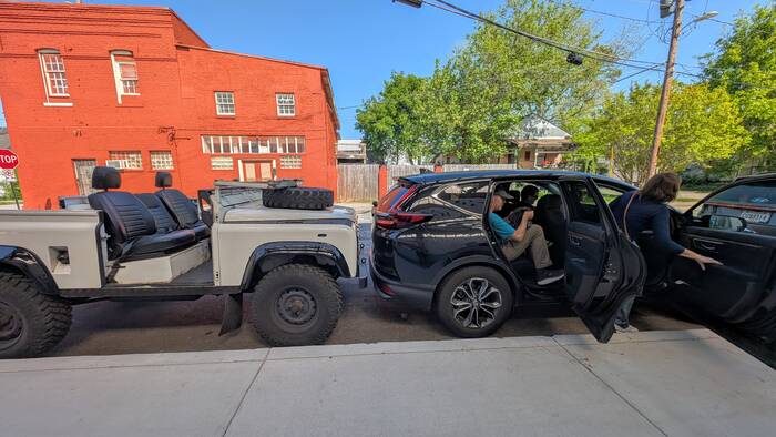 Quite the brazen boxing in by the jeep behind us. That's life in the city for ya.