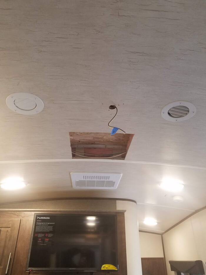 The problems came when I went to transfer the hole to the outside of the trailer (in the roof) and it became apparent that the air conditioner was not centered over the hole in the roof!