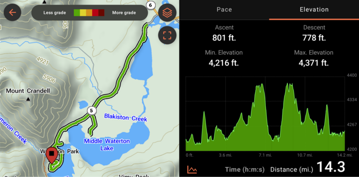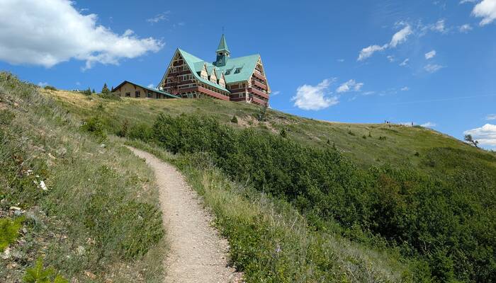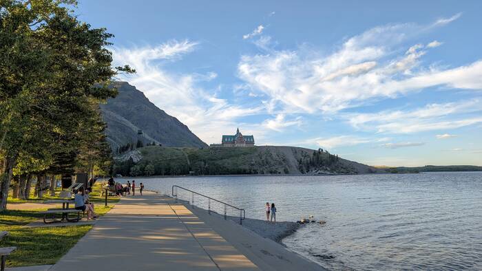 Our campsite, while not private, was nestled right in the mountains and was close to the shore of scenic Upper Waterton Lake. The campground was also conveniently located just outside of the little town of Waterton. After our weekly family cards night, we took a walk on the Townsite Loop Trail and got some ice cream in town, since it stays light out past 10 pm here at this time of year.