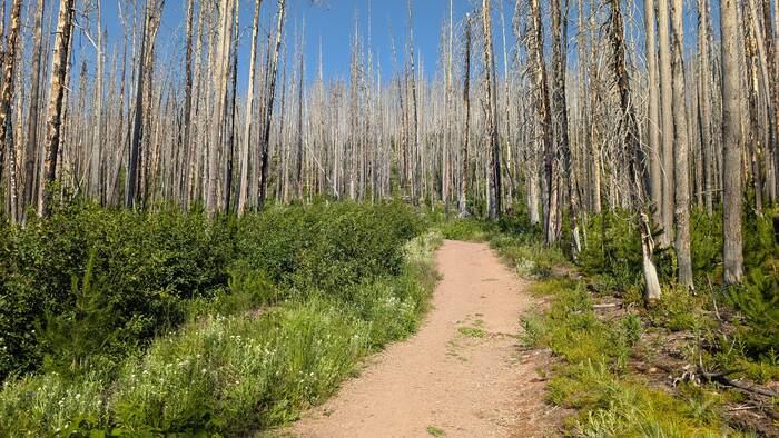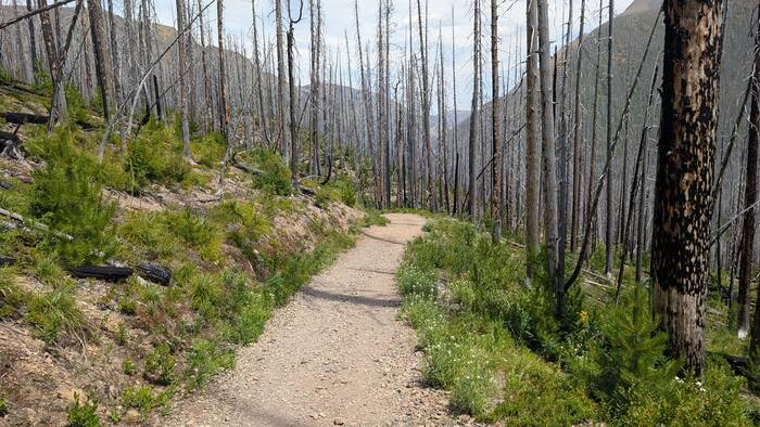 While burned forest with new growth is interesting and has a unique beauty, we decided after a few miles that we prefer forest scenery that hasn't burned